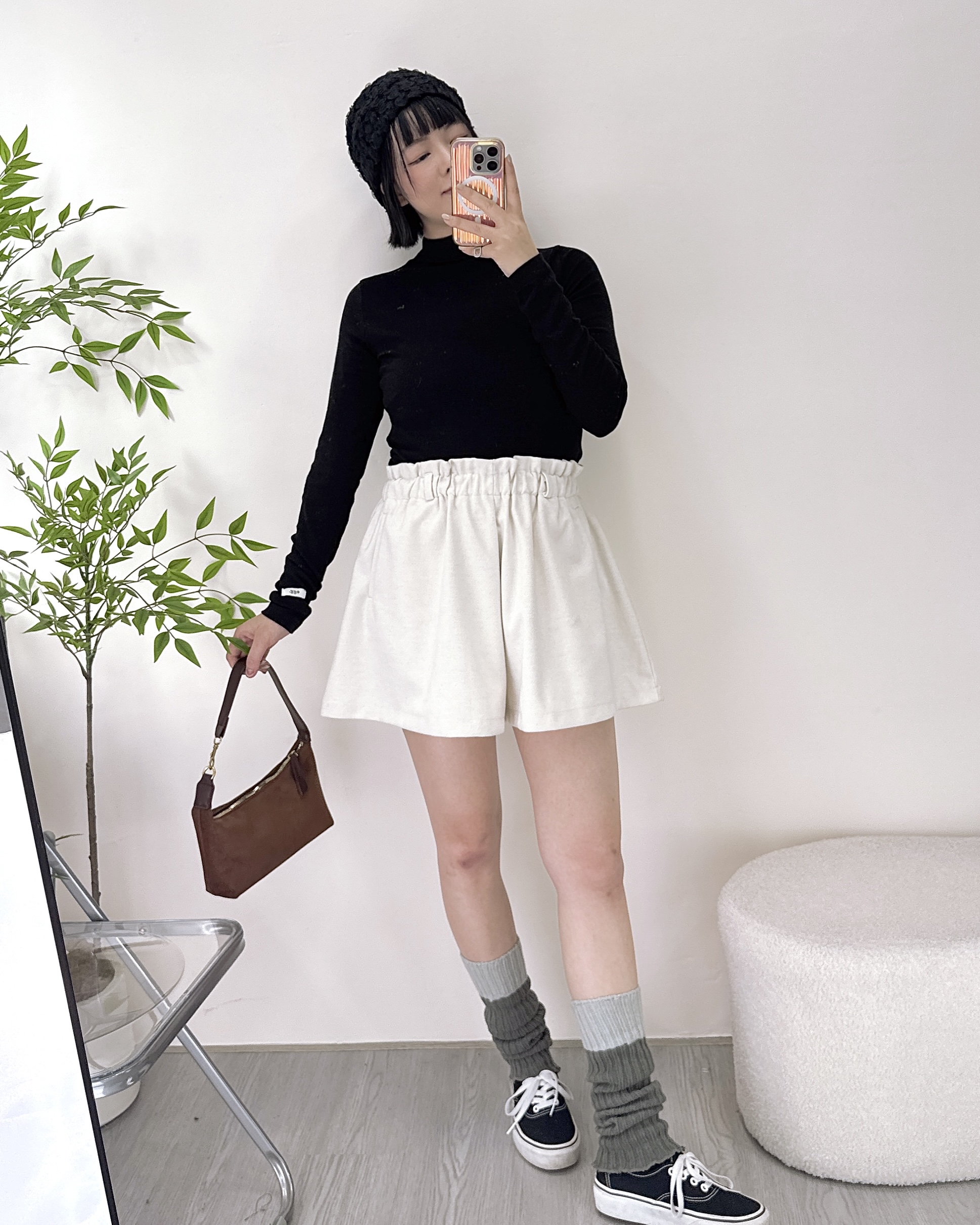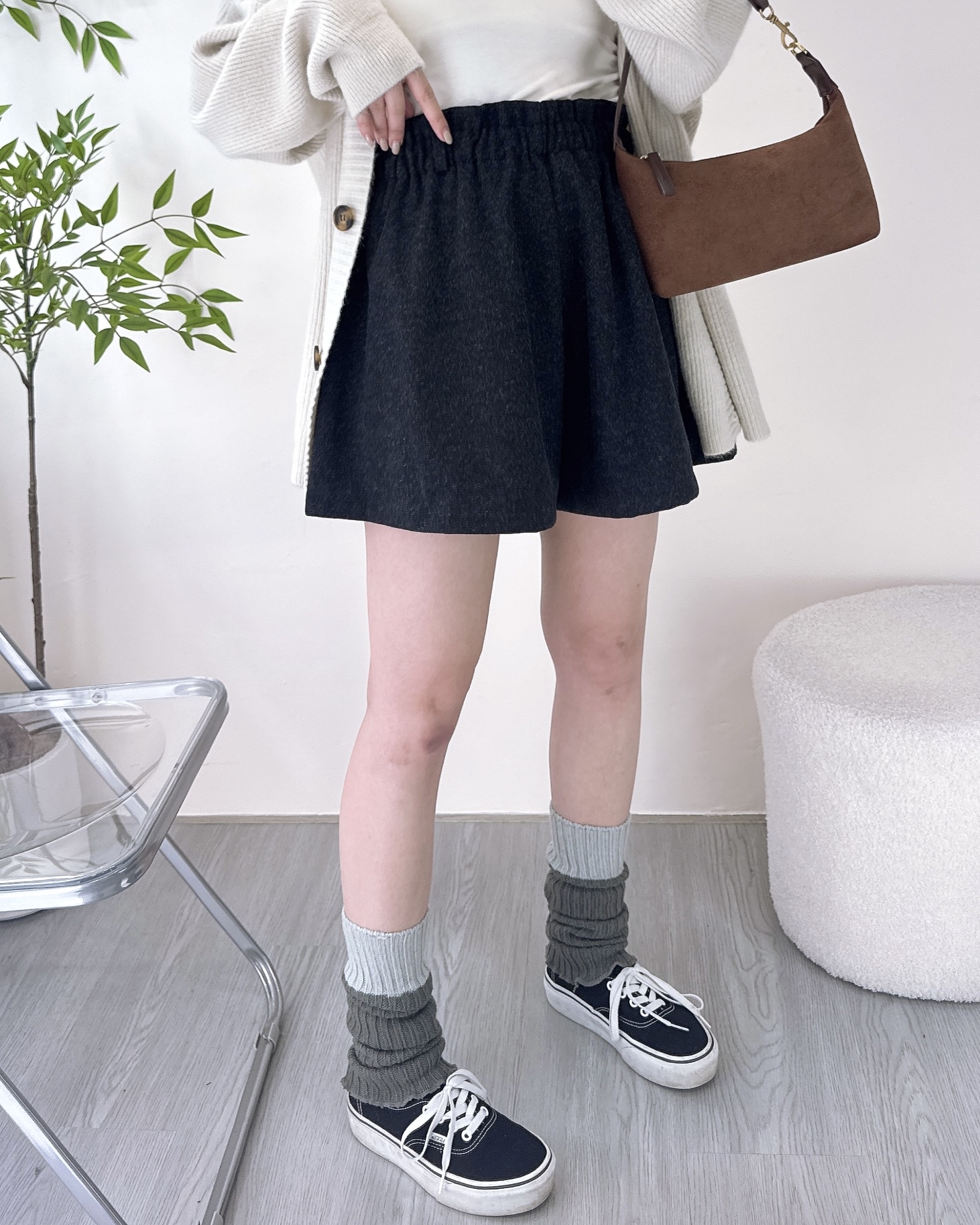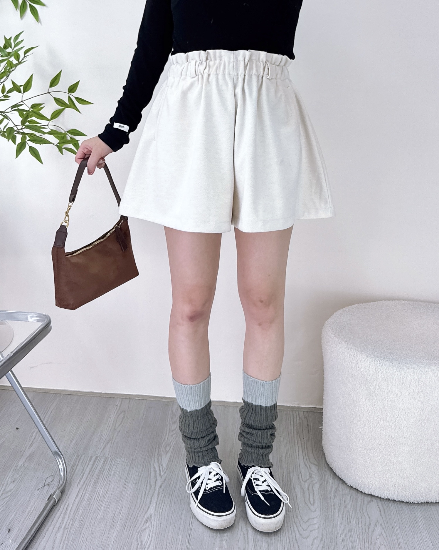 修腿型A-line磨毛短褲 3色