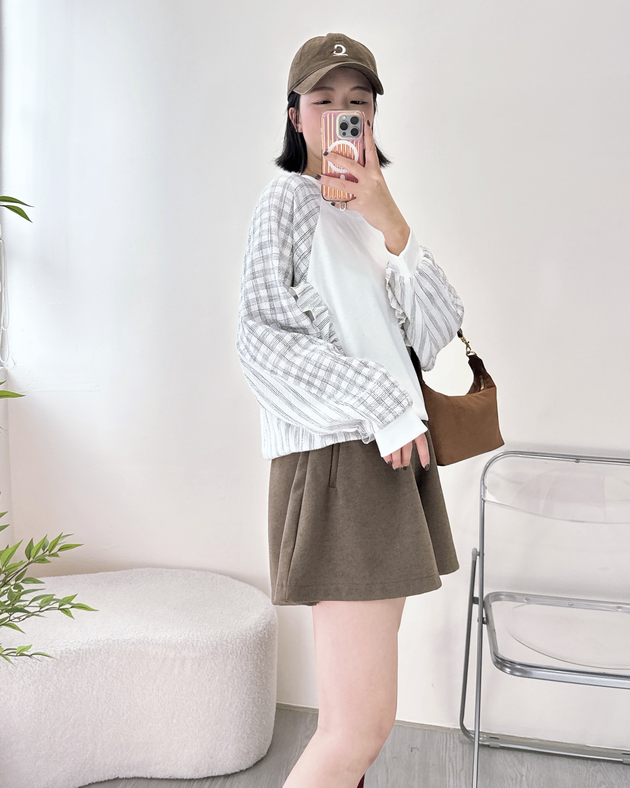 款式好靚,寬鬆大袖設計~ 拼格仔Ruffle,薄薄地均可攻退可守👍🏻 胸44吋/腰44吋/長24吋