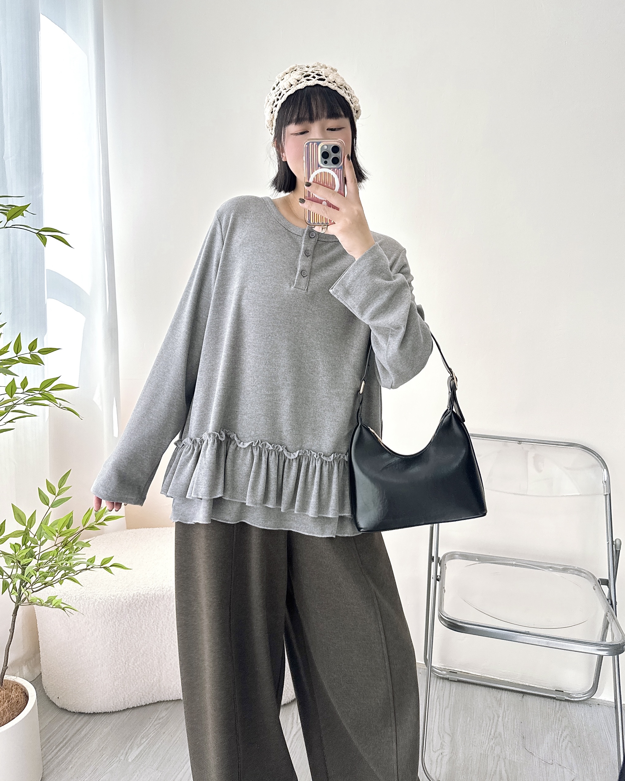 棉花糖彈性磨毛Ruffle上衣 2色